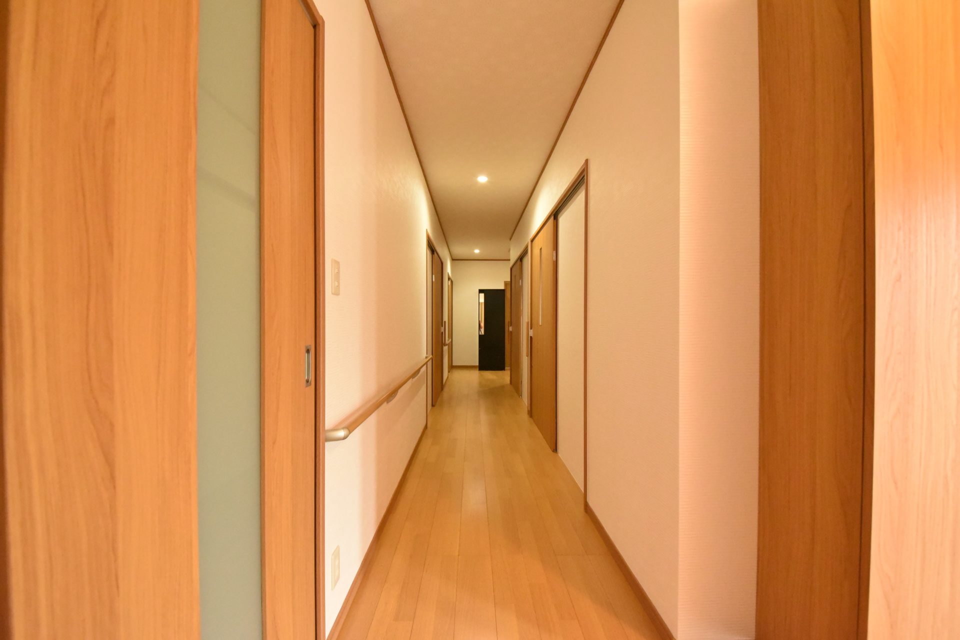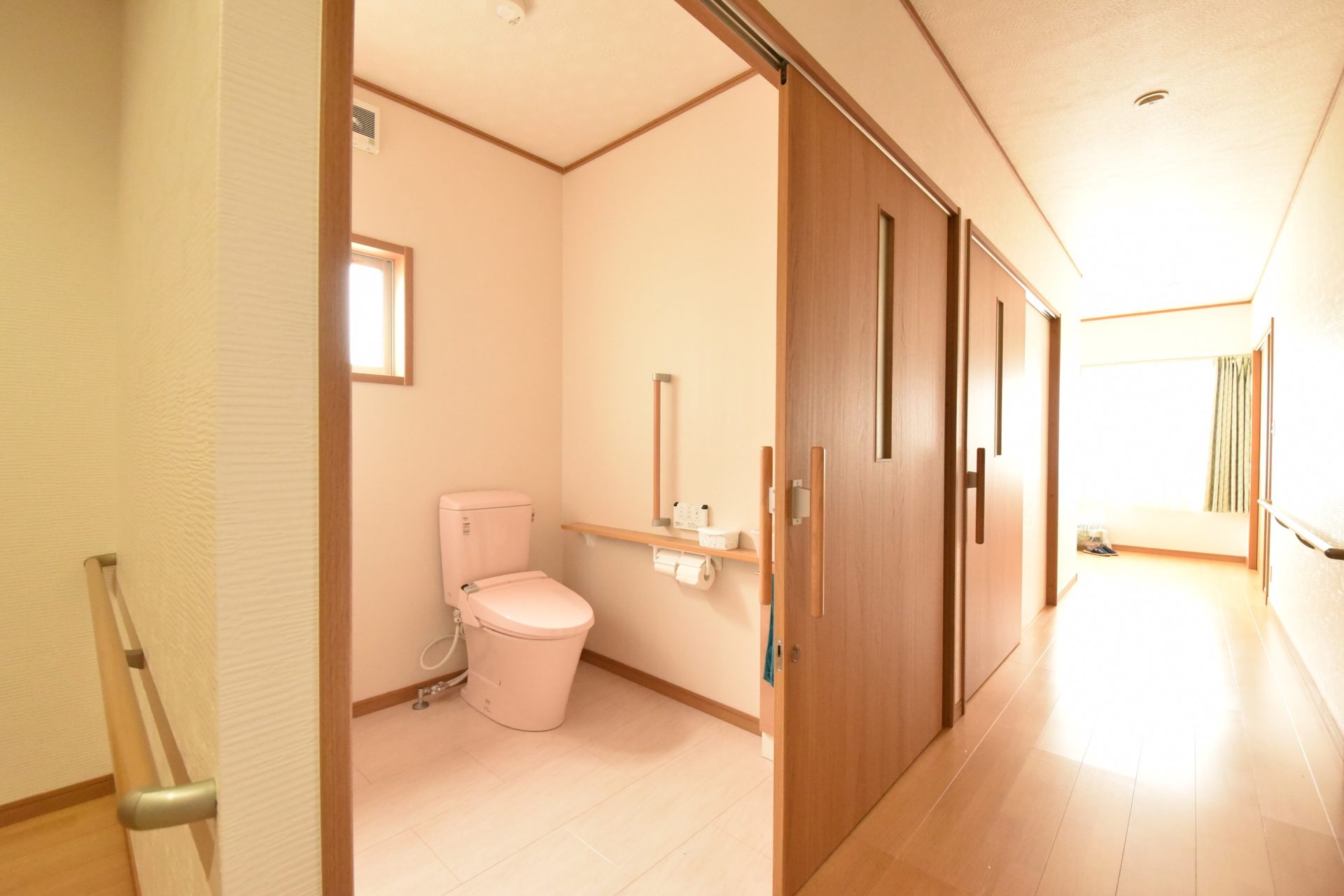 今後の未来を見据えた安心安全の家造りを意識しました。 廊下や玄関など必要な箇所を見極め、手摺を設置。 トイレは広く取り、介助しやすい空間に。 ドアを大きな引戸にして、手すりも設置しました。
